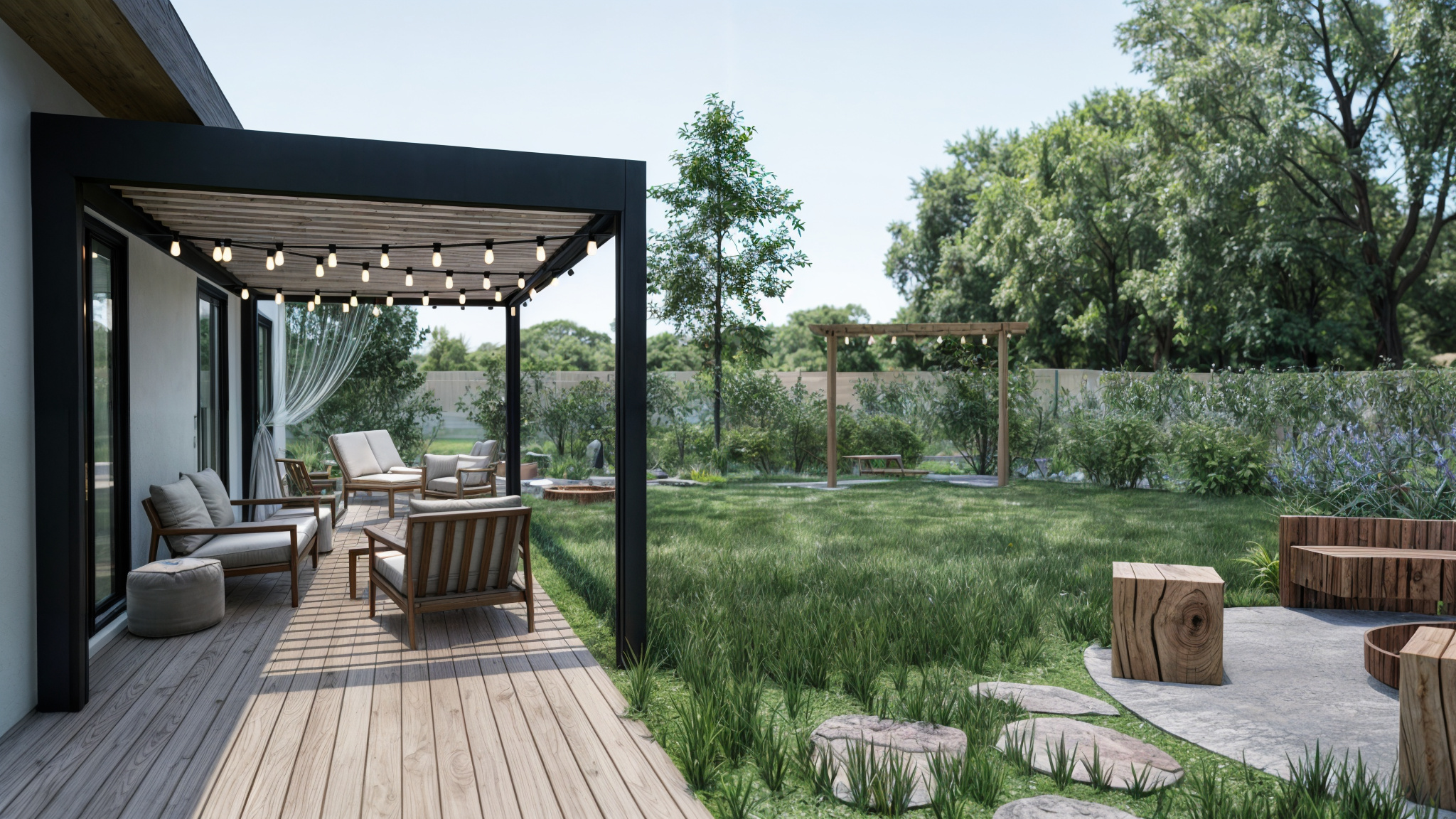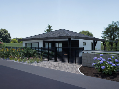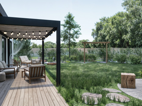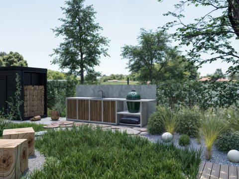 Aj menší pozemok môže ponúknuť veľa. Pri návrhu exteriéru rodinného domu sme sa sústredili na to, ako čo najlepšie využiť dostupný priestor a zároveň vytvoriť súkromnú oddychovú zónu pre každodenné chvíle pohody. Vznikol tak kompaktný, no premyslene členený priestor, ktorý spája letnú kuchynku, ohnisko, vyvýšené záhony, terasu s napájadlom a krásnu drevenú hojdačku – všetko zasadené do príjemnej, prirodzene pôsobiacej kompozície. Záhrada, ktorá dýcha pokojom a má všetko, čo potrebujete na relax v súkromí.