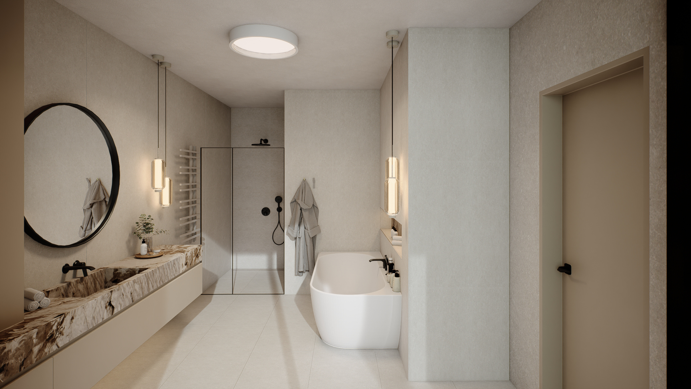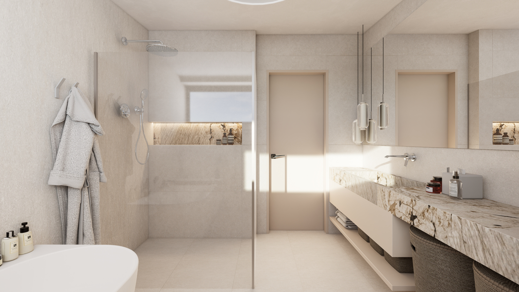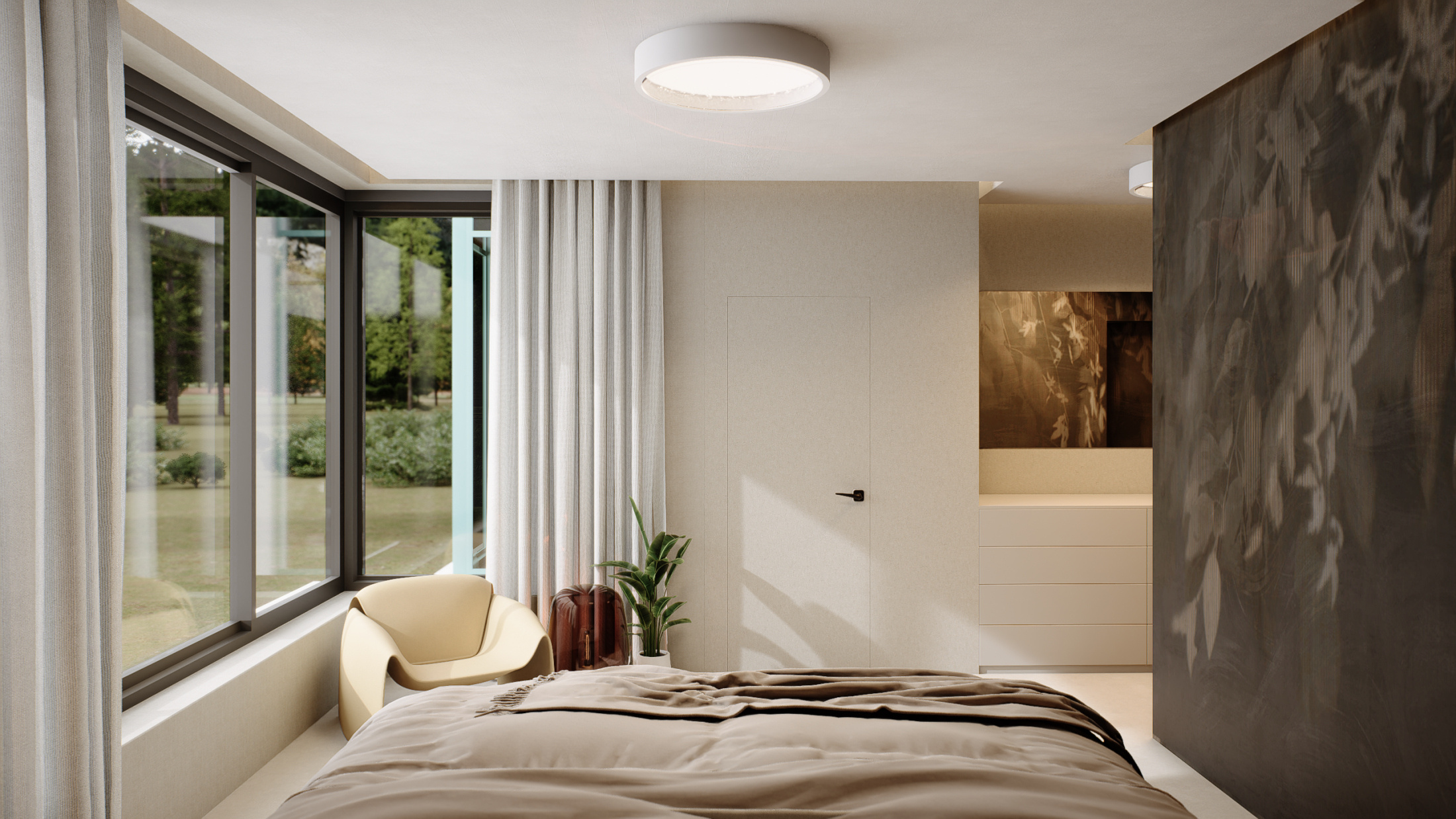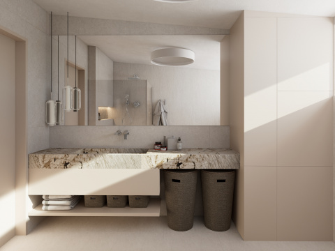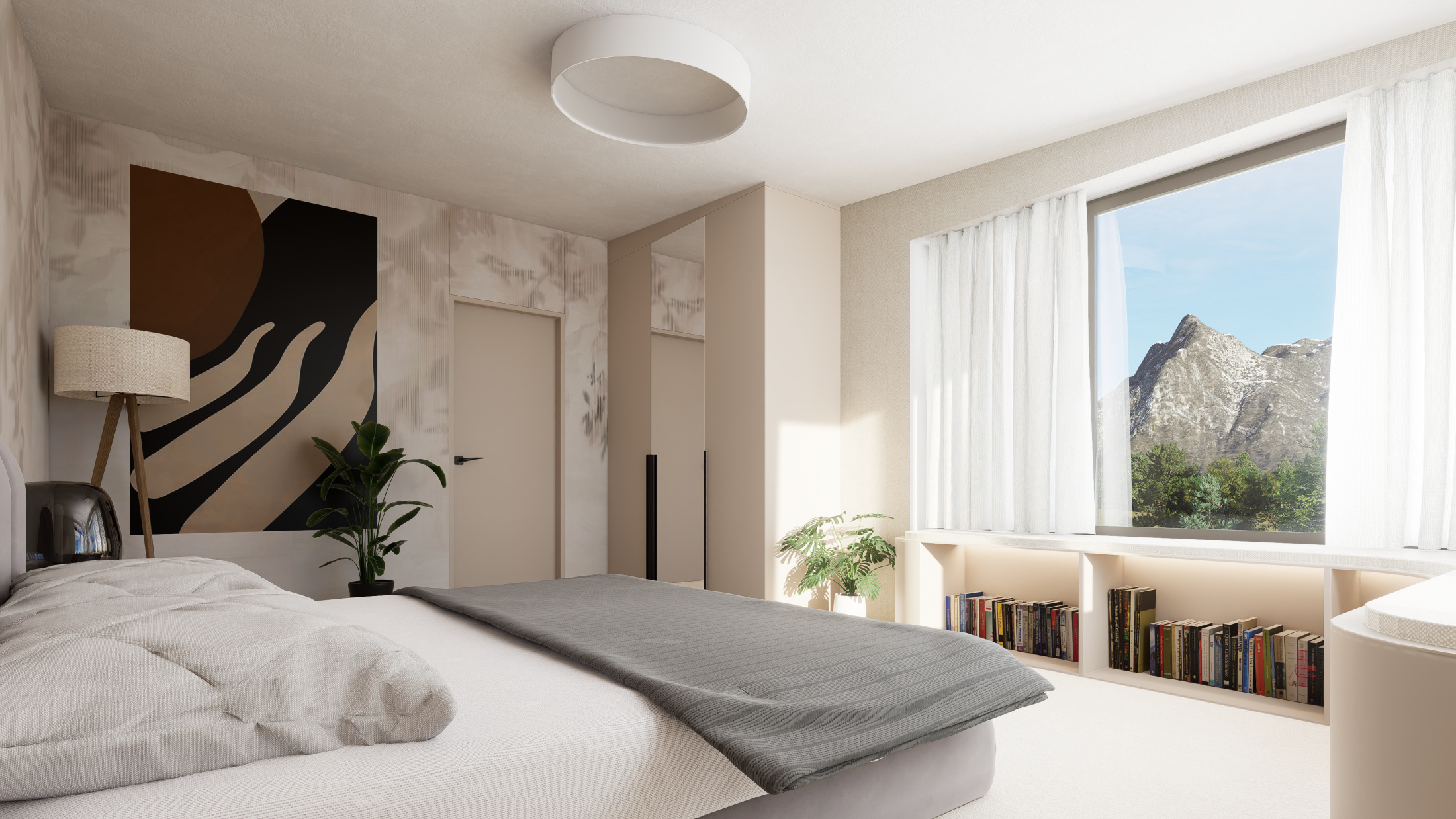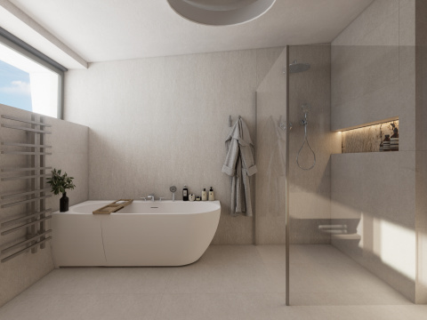 Interiér rodinného domu v Lomnici vznikol ako výsledok tvorivej spolupráce s klientom, v ktorej sme zasiahli aj do dispozičného riešenia a detailov konceptu. Priestor spája elegantný minimalizmus s výraznými materiálmi a hrou oblých a ostrých línií, čím vzniká harmonický, no dynamický celok. Dominantou sa stal prírodný kameň, ktorý podčiarkuje originalitu interiéru a nadčasový charakter. Návrh prepája interiér s panorámou Tatier, pričom denná zóna podporuje spoločný život a nočná prináša pokoj a kontakt s prírodou.