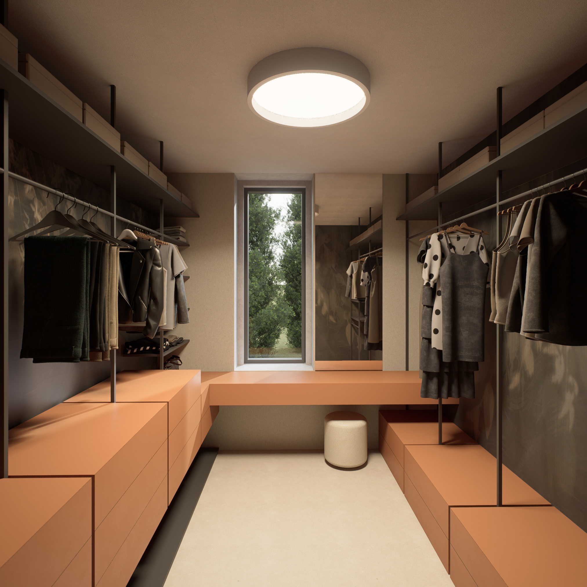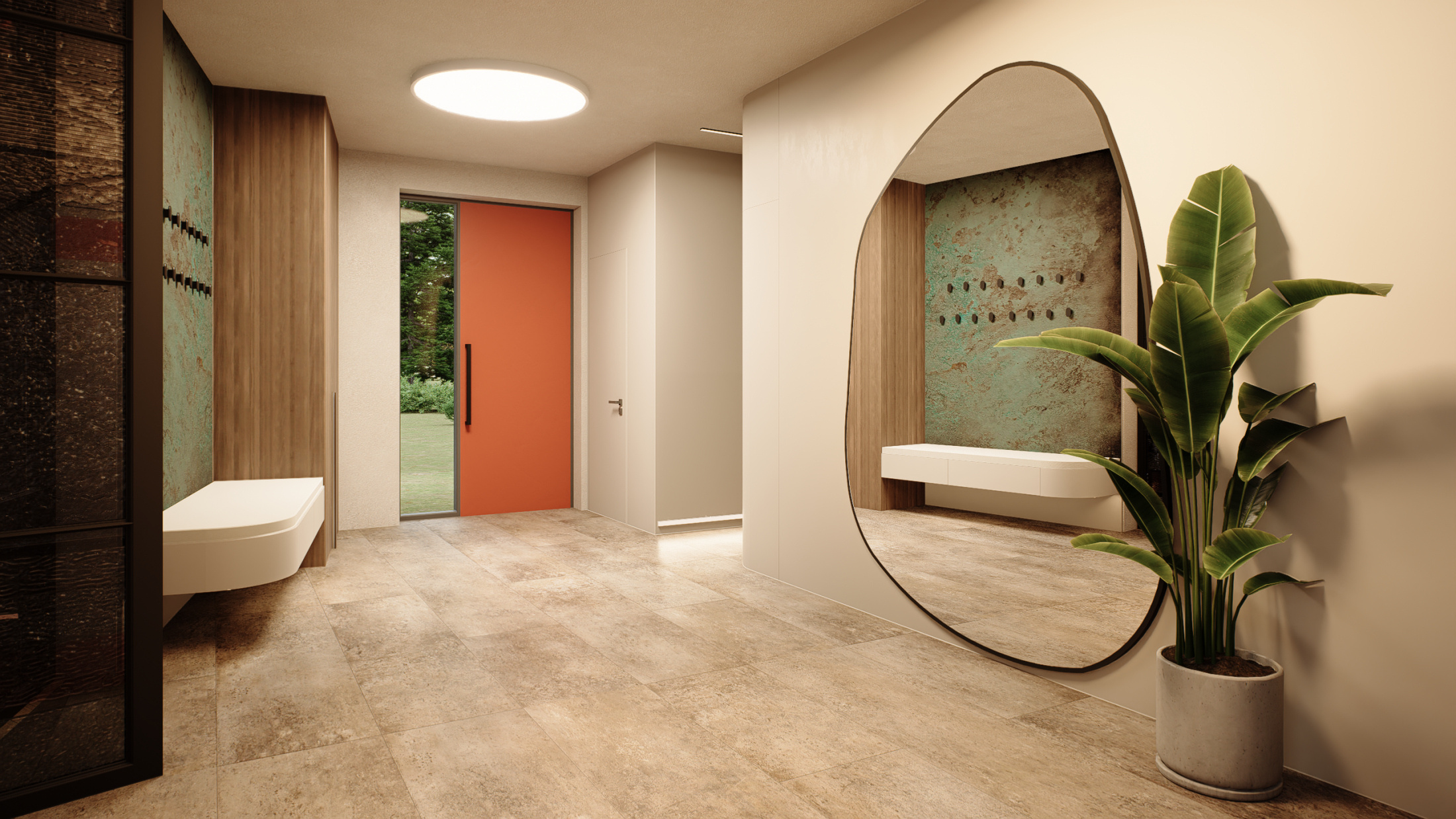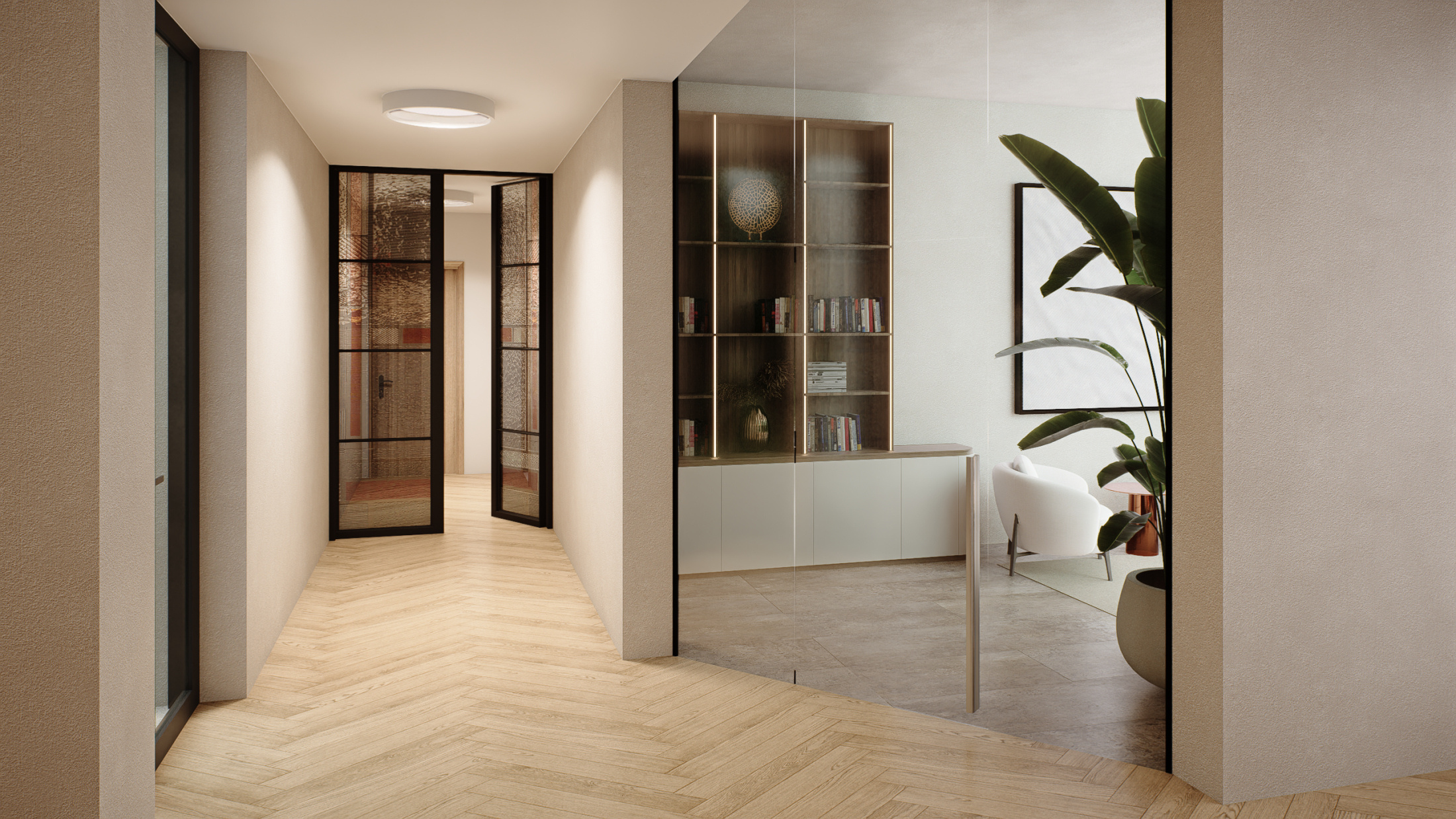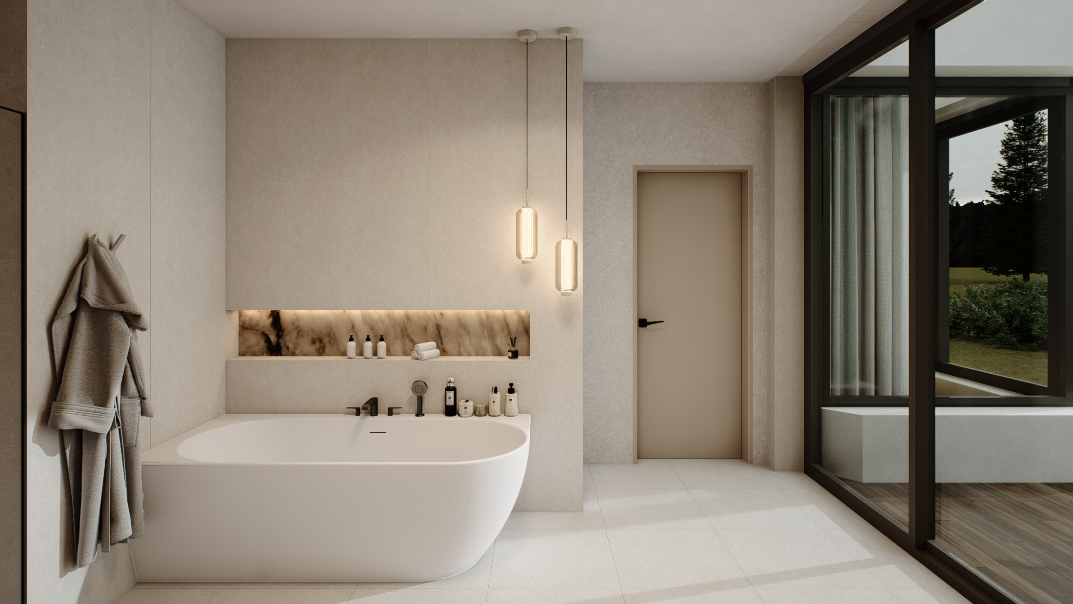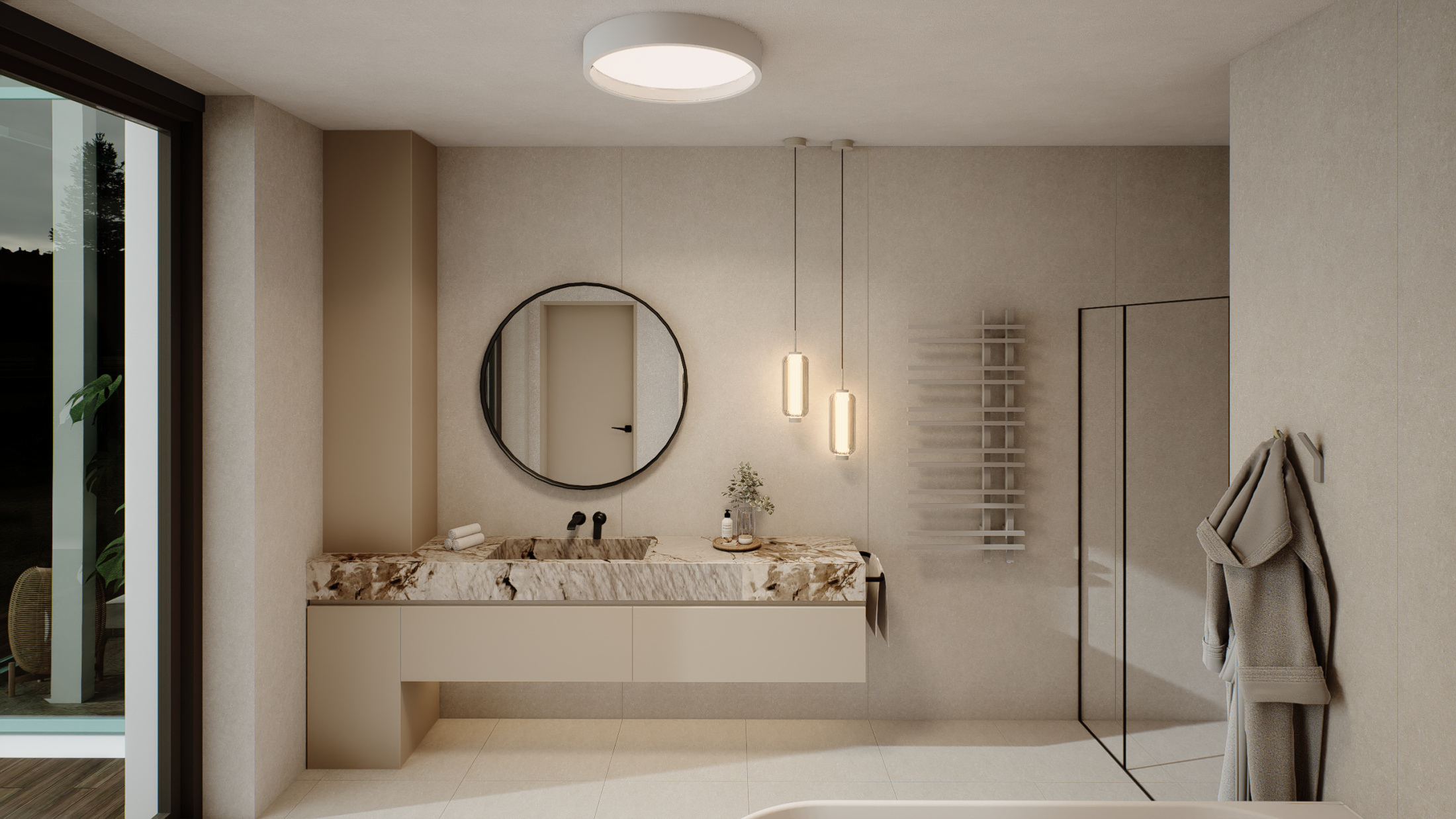 Interiér rodinného domu v Lomnici vznikol ako výsledok tvorivej spolupráce s klientom, v ktorej sme zasiahli aj do dispozičného riešenia a detailov konceptu. Priestor spája elegantný minimalizmus s výraznými materiálmi a hrou oblých a ostrých línií, čím vzniká harmonický, no dynamický celok. Dominantou sa stal prírodný kameň, ktorý podčiarkuje originalitu interiéru a nadčasový charakter. Návrh prepája interiér s panorámou Tatier, pričom denná zóna podporuje spoločný život a nočná prináša pokoj a kontakt s prírodou.